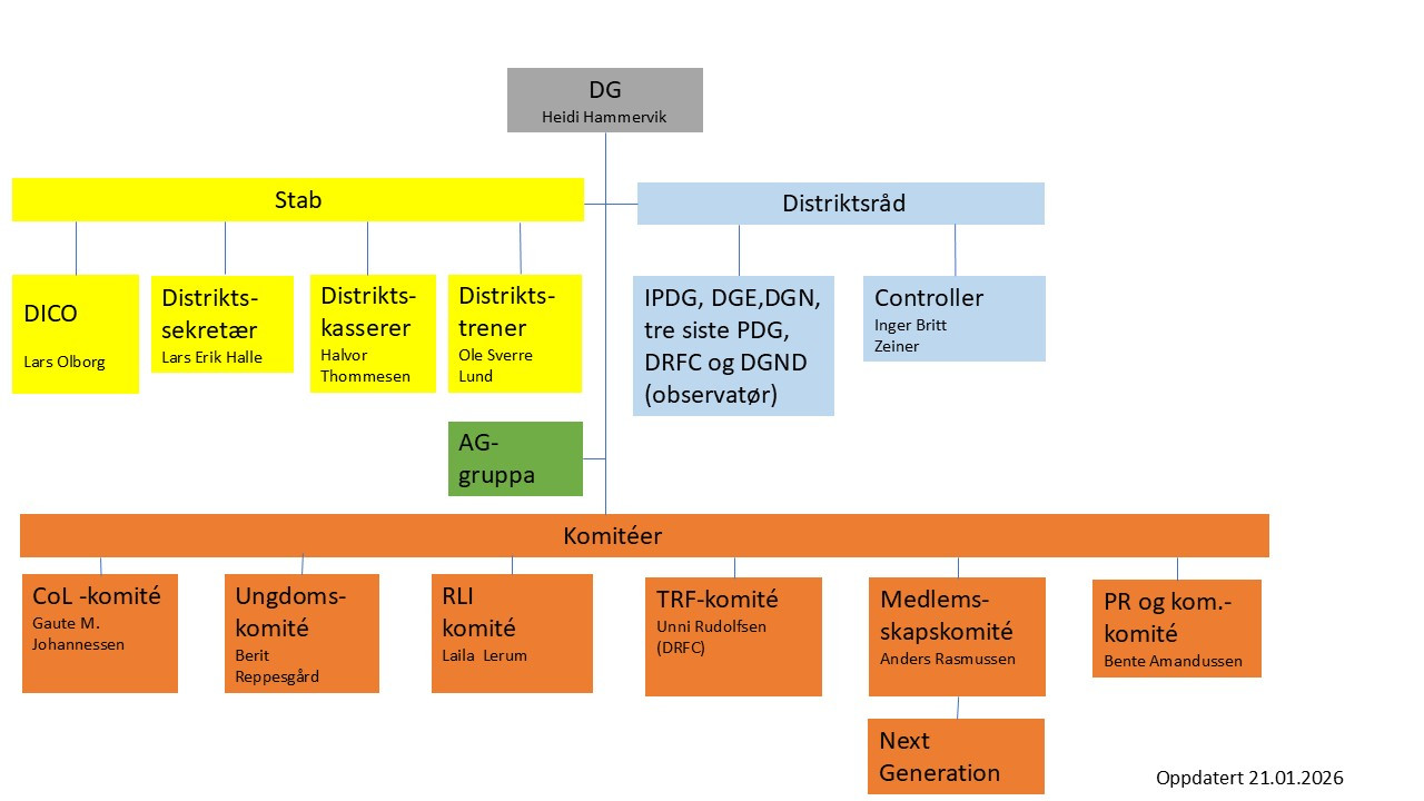 Vår distriktsguvernør 2026 - 2027, Heidi HammervikHer finner du en presentasjon av Distriktsguvernør Heidi Hammervik, sammen med en liste over hennes guvernørbesøk. Etterhvert som guvernørens månedsbrev sendes ut, legges de også ut på denne nettsiden. |
