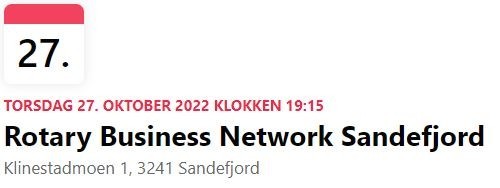 Vi inviterer til vårt første møte torsdag 27 oktober i Sandefjord. Vi har fått med oss Morten Christensen som foredragsholder. Christensen er Konsern direktør i hotellkjeden Unike hoteller og skal snakke om sin vei dit. Vi kommer til å ha fokus på mingling og bygge nettverk, samtidig skal vi også forteller litt om hva er Rotary. Alle er velkommen, både rotarianere og de som kunne tenke seg ett nettverk eller høre et godt foredrag. Det blir enkel servering av mat.